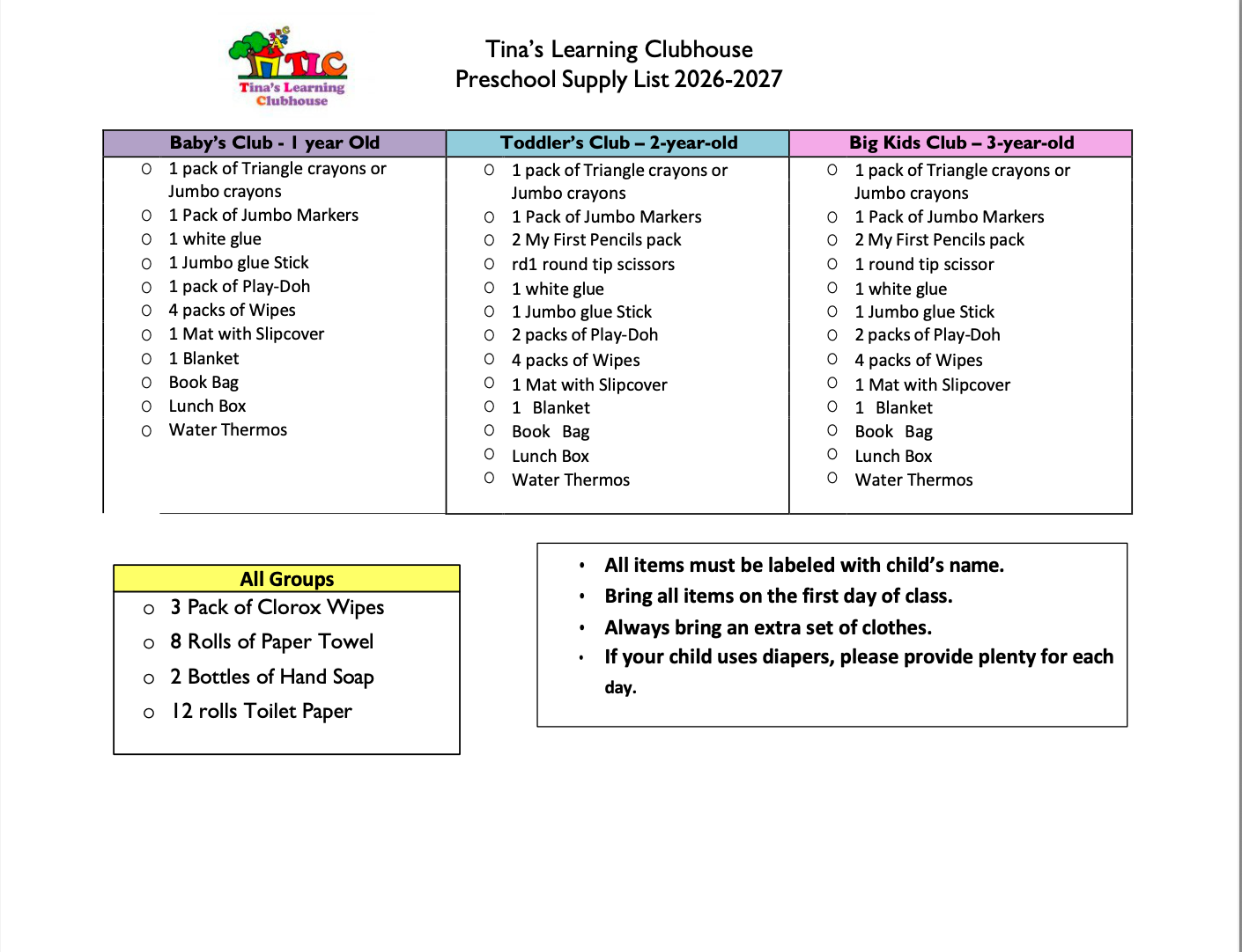 SUPPLY LIST 2026-